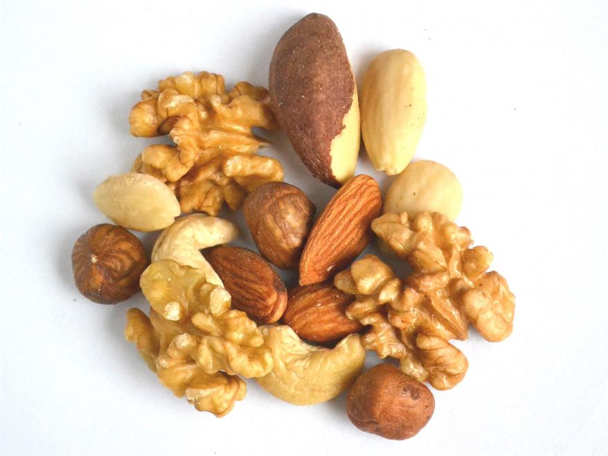 Haselnüsse, Mandeln, Erdnüsse, Cashewkerne, Walnußhälften, Pekannusskerne