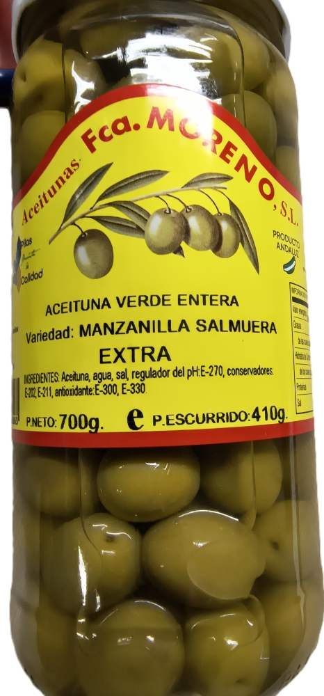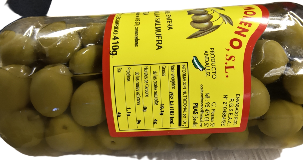 Typisch andalusische Oliven von der Firma "Aceitunas Fa. MORENO S.L. aus Sevilla.